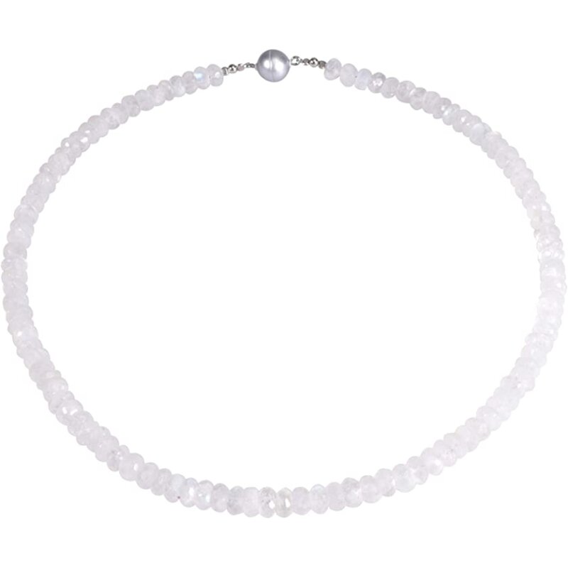 Gesamt- Gewicht: ca.= 34 Gramm (ca. 170 Karat), Länge ca.: 45 cm. Ø der facettierten Mondstein Scheiben ca. 7 mm, Magnetschloss: ca. 10 mm