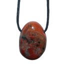 Granat / Almandin - Amphibolit Anhänger flacherTrommelstein mit Bohrung