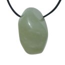 Jade Serpentin Anhänger flacher Trommelstein ca. 30 x 20 mm in Tropfen Form mit Bohrung ca. 2,5 mm
