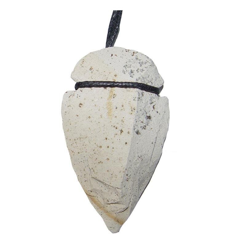Pfeilspitze aus hellem Quarzit mit Band als Anhänger / Kette